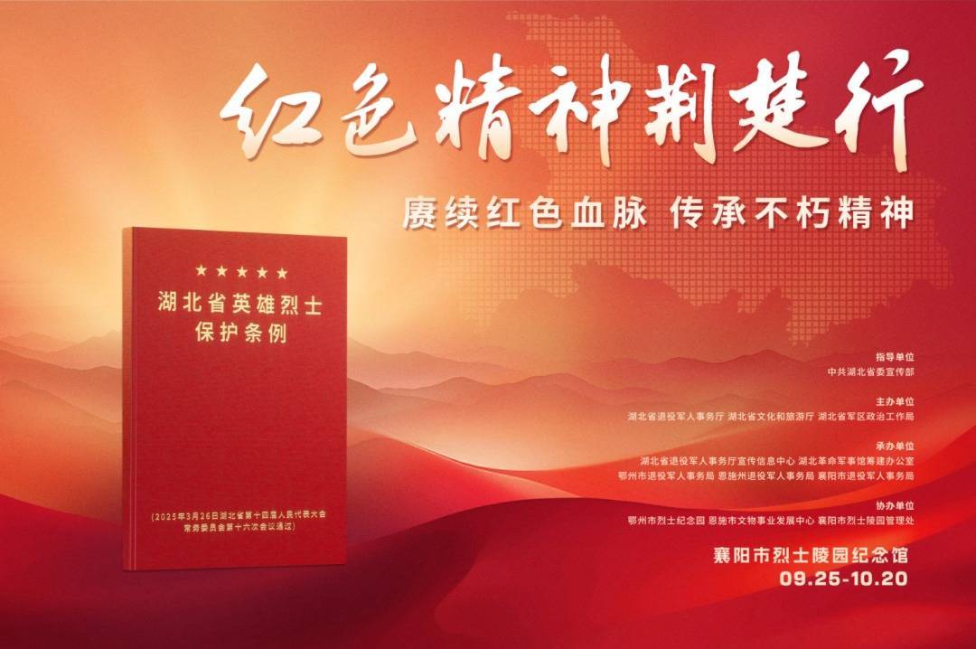 据了解,本次活动由湖北省委宣传部指导,省退役军人事务厅、省文化和旅游厅、省军区政治工作局共同主办,襄阳市退役军人事务局承办,展览时间为9月25日至10月20日。展览分为抗日战争、抗美援朝、红色传家宝、老兵荣誉、烈士遗言五大板块,集中展出勋章、信物、历史实物等55件珍贵展品,以鄂豫皖、湘鄂西、湘鄂赣革命根据地历史为主线,展现大别山精神等跨越时代的红色力量。有意参观的单位和个人,可致电0710-3556836预约。